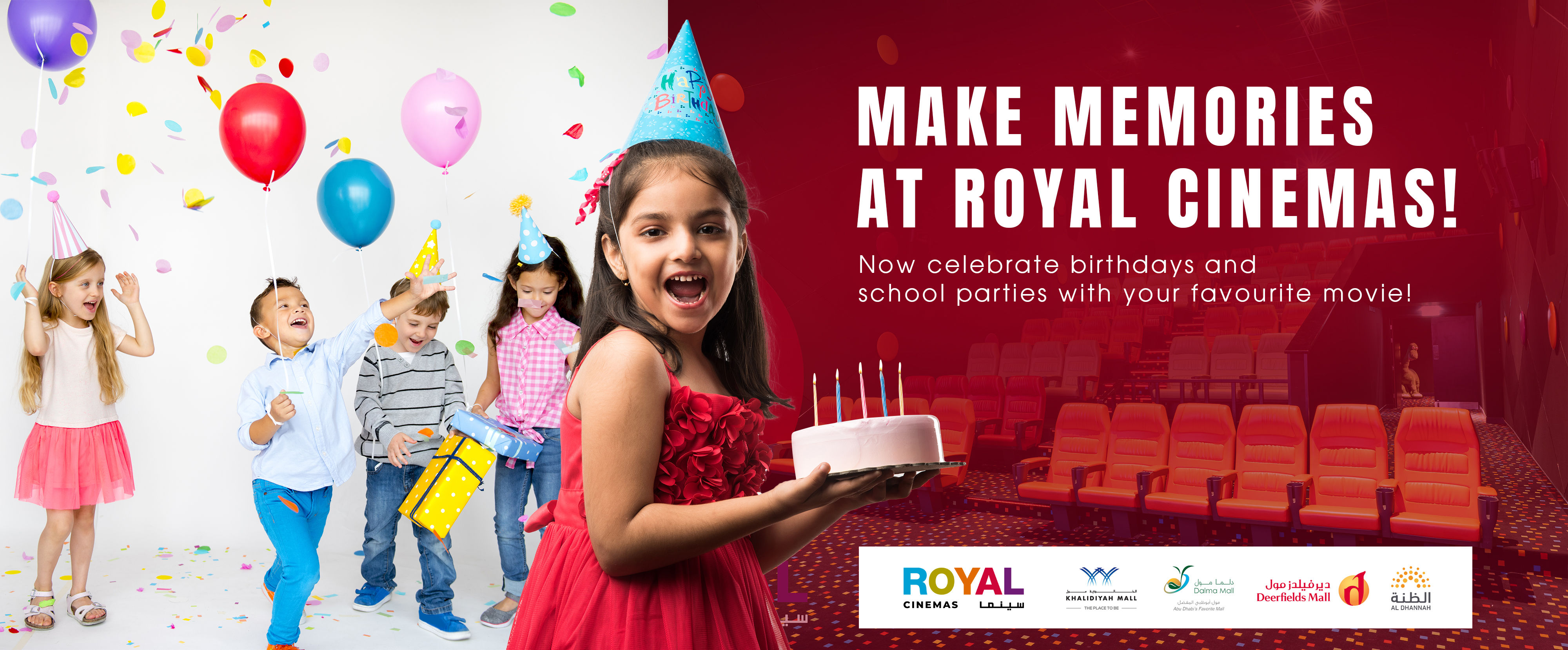 Experience the thrill of a Cinematic celebration with our exclusive birthday party offer in our Cine Royal Cinemas with the exceptional party event makers, That make your special day unforgettable as you and your guest enjoy the magic of the screen with your customized birthday themes.